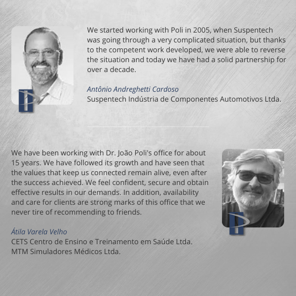A company formed by agents registered with INPI, lawyers and engineers, the Poli Marcas e Patentes office operates strongly in the national and international markets, protecting countless Brands, Patents, Industrial Designs and Software that are visible in our daily lives.